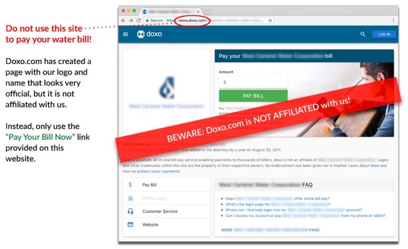 Do Not Use DOXO as a third party online bill payment website. Instead, only use the "Pay Your Bill Now" link provided on this website.